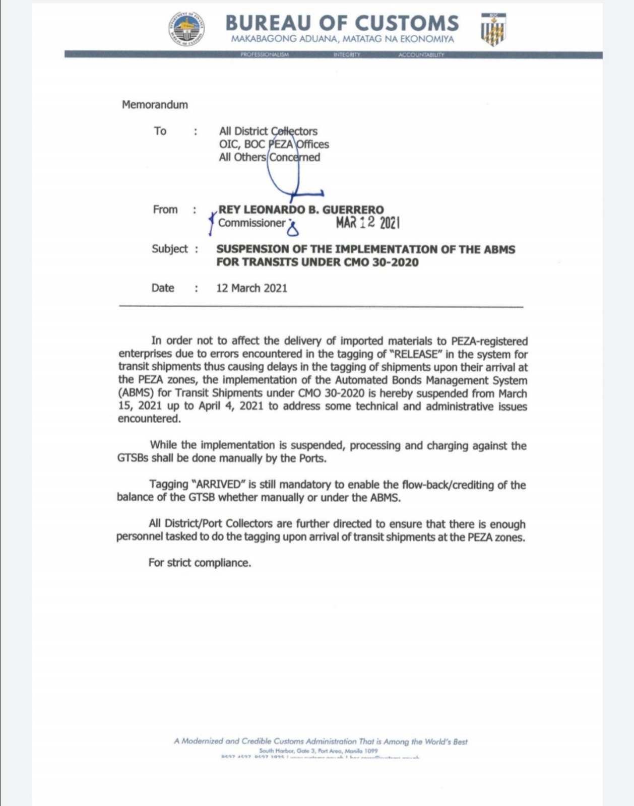 BOC Implementation of ABMS for GWB Cebu, Davao, Cagayan De Oro, Subic, Dadiangas, Iloilo, Tacloban, Zamboanga and Batangas |